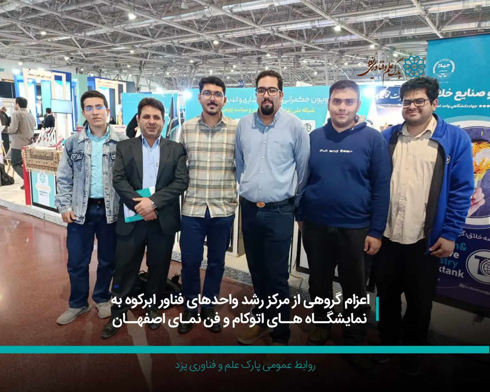 جمعی از فناوران مرکز رشد واحدهای فناور ابرکوه با هدف آشنایی با جدیدترین دستاوردهای حوزه فناوری اطلاعات، ارتباطات و هوشمندسازی، از نمایشگاه اتوکام و فننمای اصفهان بازدید کردند.