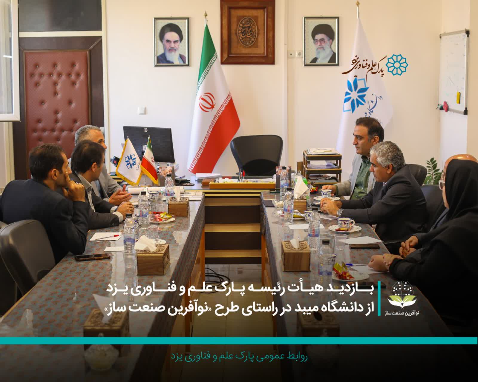 گفتنی است؛ این بازدید در راستای اجرای طرح «نوآفرین صنعتساز» و با هدف بررسی ظرفیتها، رفع موانع و تقویت همکاریهای مشترک میان پارک علم و فناوری یزد و دانشگاه میبد انجام شد.