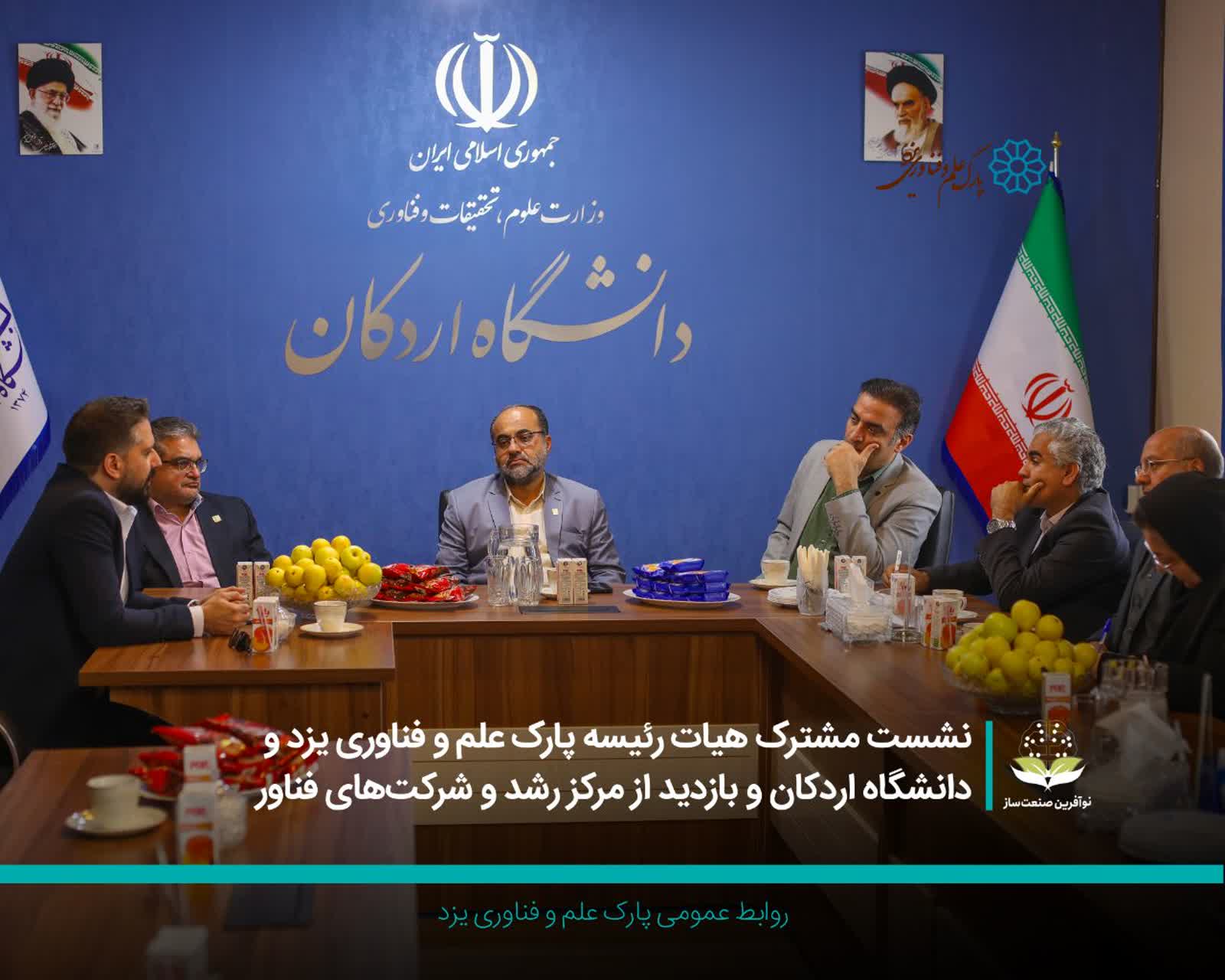به گزارش روابط عمومی پارک علم و فناوری یزد، در این نشست که با حضور «مجید شخصی‌نیایی»، رئیس پارک علم و فناوری یزد و اعضای هیات‌رئیسه پارک برگزار شد، راهکارهای گسترش همکاری میان دانشگاه و پارک علم و فناوری، حمایت از شرکت‌های دانش‌بنیان و توسعه زیست‌بوم نوآوری در شهرستان اردکان مورد بررسی قرار گرفت.