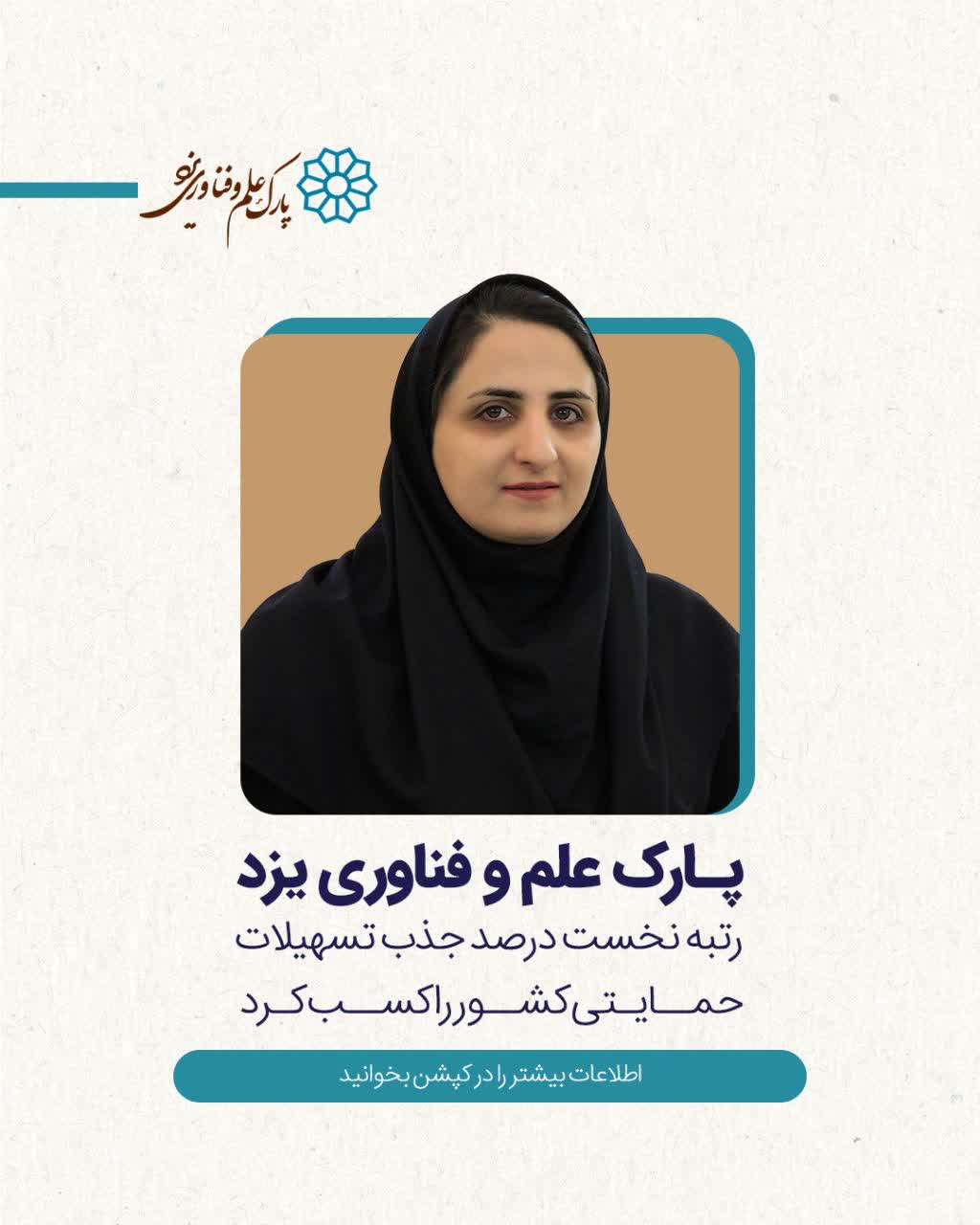 به گفته وی، علاوه بر این، در ردیف تسهیلات وزارت علوم، تحقیقات و فناوری (عتف) نیز ۴۰ میلیارد تومان منابع مالی تخصیص یافته که بهصورت صددرصدی جذب شده و همین امر موجب شد پارک علم و فناوری یزد در سطح کشور رتبه نخست جذب تسهیلات تبصره ۱۸ وزارت عتف را به خود اختصاص دهد.