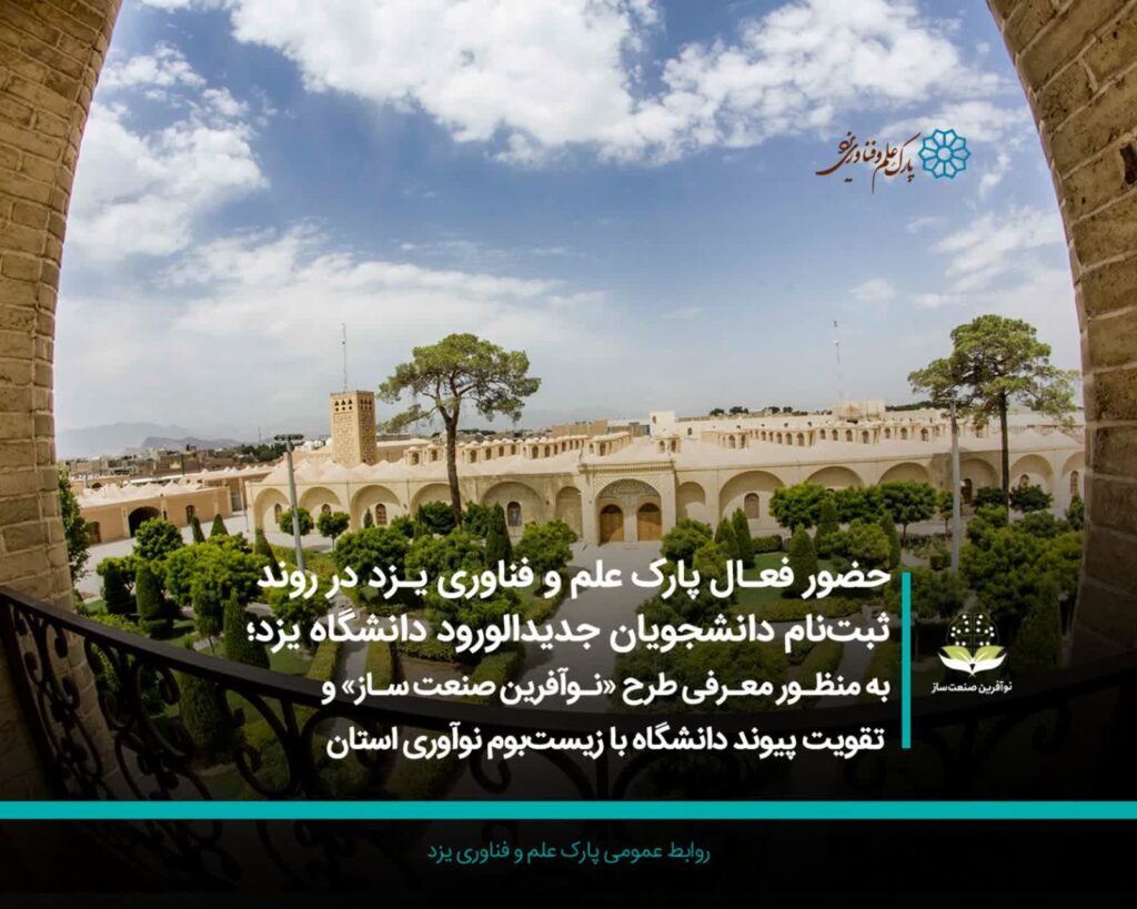 حضور فعال پارک علم و فناوری یزد در روند ثبتنام دانشجویان جدیدالورود دانشگاه یزد؛ به منظور معرفی طرح «نوآفرین صنعتساز» و تقویت پیوند دانشگاه با زیستبوم نوآوری استان