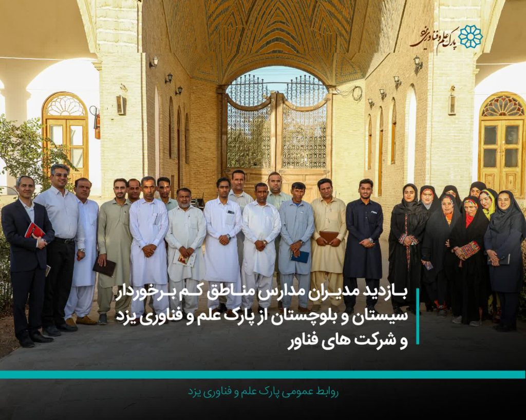 11 شهریور اخبار, اسلاید شو بازدید مدیران مدارس مناطق کمبرخوردار سیستان و بلوچستان از پارک علم و فناوری یزد و شرکتهای فناور مهر ۱, ۱۴۰۴ توسط admin در چارچوب طرح نوآفرین صنعت ساز پارک علم و فناوری یزد میزبان مدیران مدارس مناطق کمبرخوردار سیستان و ...ادامه مطلب